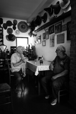This is a reportage from my region, Friuli-Venezia Giulia, during the summer of 2016. The images capture scenes of life in frasche, osterie, and small village bars where people spend their time as they did in the early 20th century, but with happiness, friendship, and genuine simplicity. Everyone knows everyone, and even as a stranger, I was welcomed as if they had known me for years. Folks offered me a ‘taglio’ (a glass of wine), chatted with me, and shared tips on other places to visit. Although frasche date back to the time of Charlemagne, they are very hard to find. There are no websites, maps, and sometimes not even street signs. Outside, you might spot a red arrow with a twig indicating a frasca. I had to travel to remote villages in the mountains or countryside and ask locals for information, but in the end, I discovered some unique and emotional places.