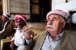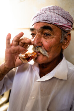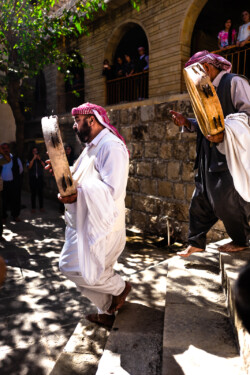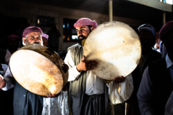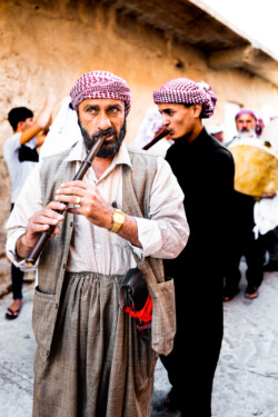 The celebrations begin in the morning at the Baba Sheikh’s house. He’s the elderly spiritual leader of all Yazidis, akin to the Pope for Christians or the Prophet for Muslims. The rituals continue in Lalish, the holiest city for Yazidis. At night, a beautiful ceremony with music and candles marks the end of summer. During the ceremony, it’s absolutely forbidden to take photos of the man dressed in black, as he represents their God. So, I recorded some videos featuring only the music and voices.