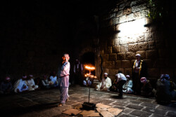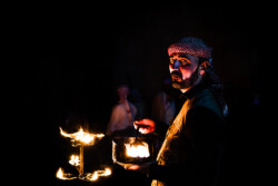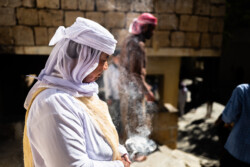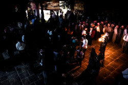 The ceremony involves seven elders, who symbolize the seven angels, walking in three circular paths around seven candles. They take three steps at a time, touching the black-robed man’s hair at every third step, accompanied by deep music and special chants. At the end of the ritual, participants enjoy a soup made from summer vegetables since they won’t be available anymore.