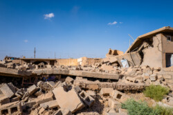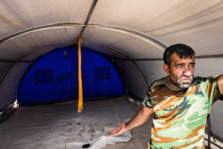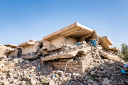 These images show how the Yazidi people have been forced to live from 2014 up to now, on Mount Sinjar and in refugee camps. Their homes were destroyed by ISIS and during fights with Iraqi and Kurdish forces, and they lack the money to rebuild them.